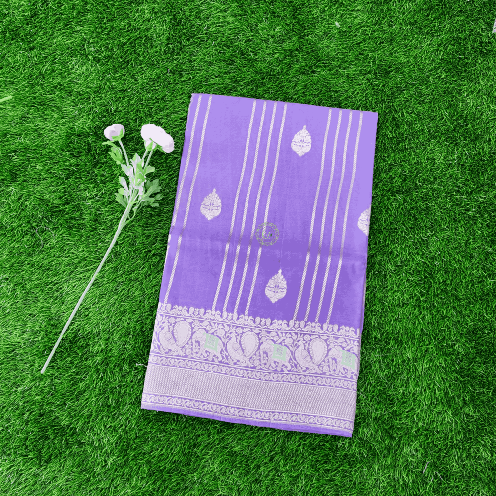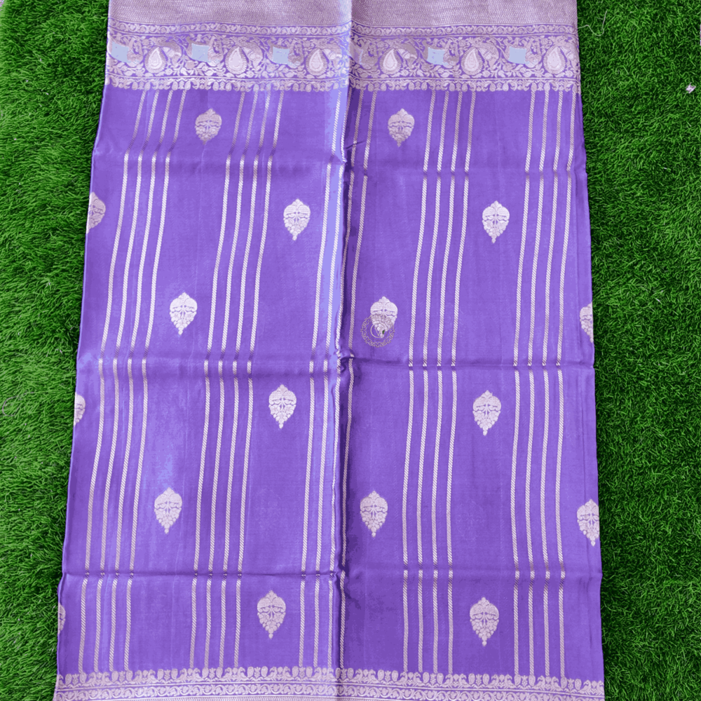 Design : Banarasi Satin Silk Lavender Colour ,d-stripes
