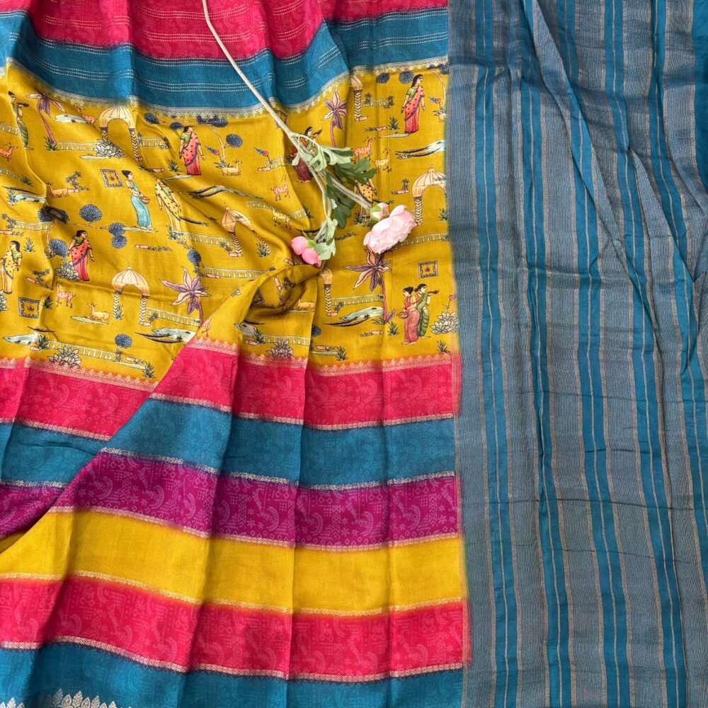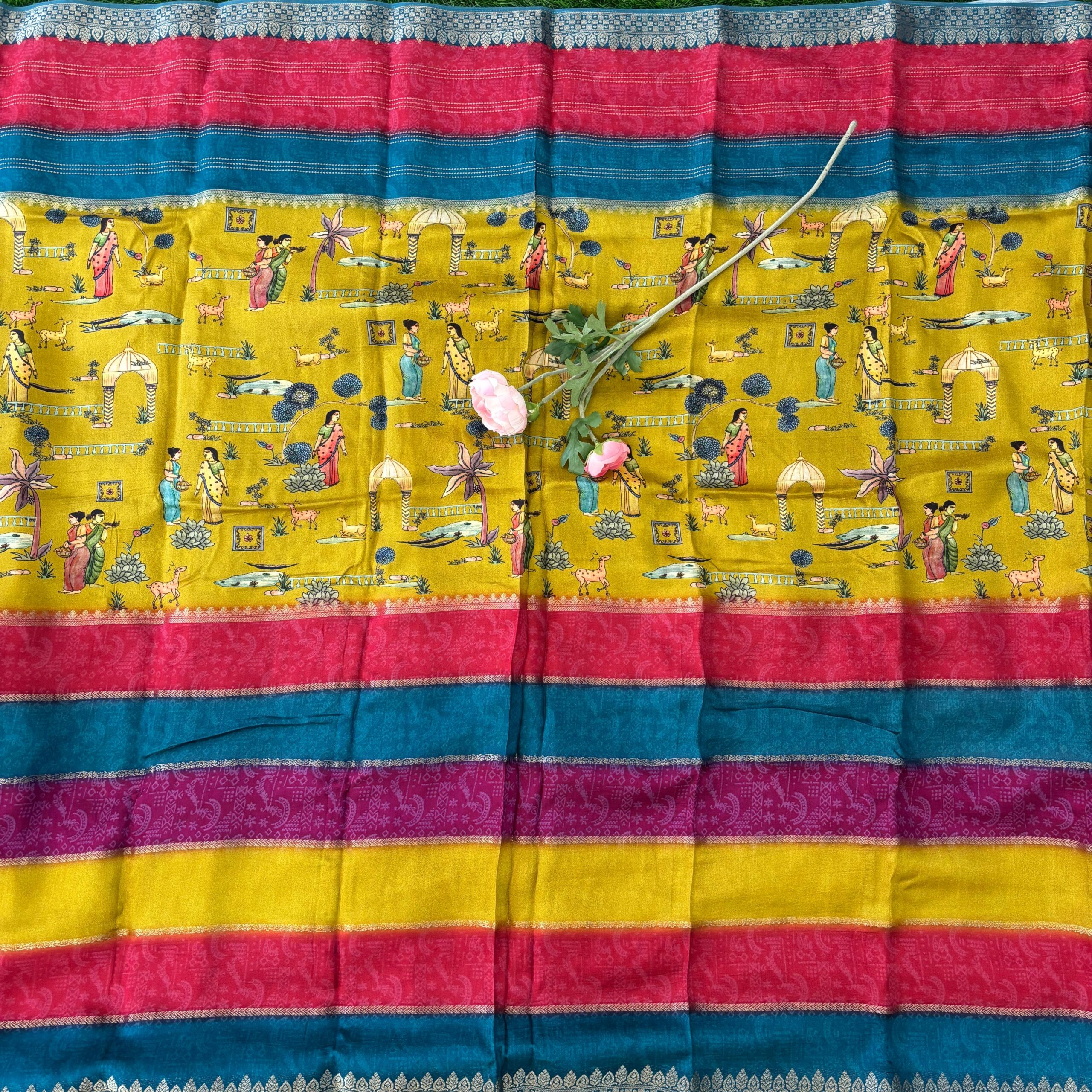 Material : Multi Colour Kalamkari Printed Dola Crepe Saree