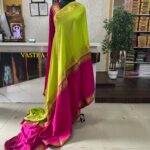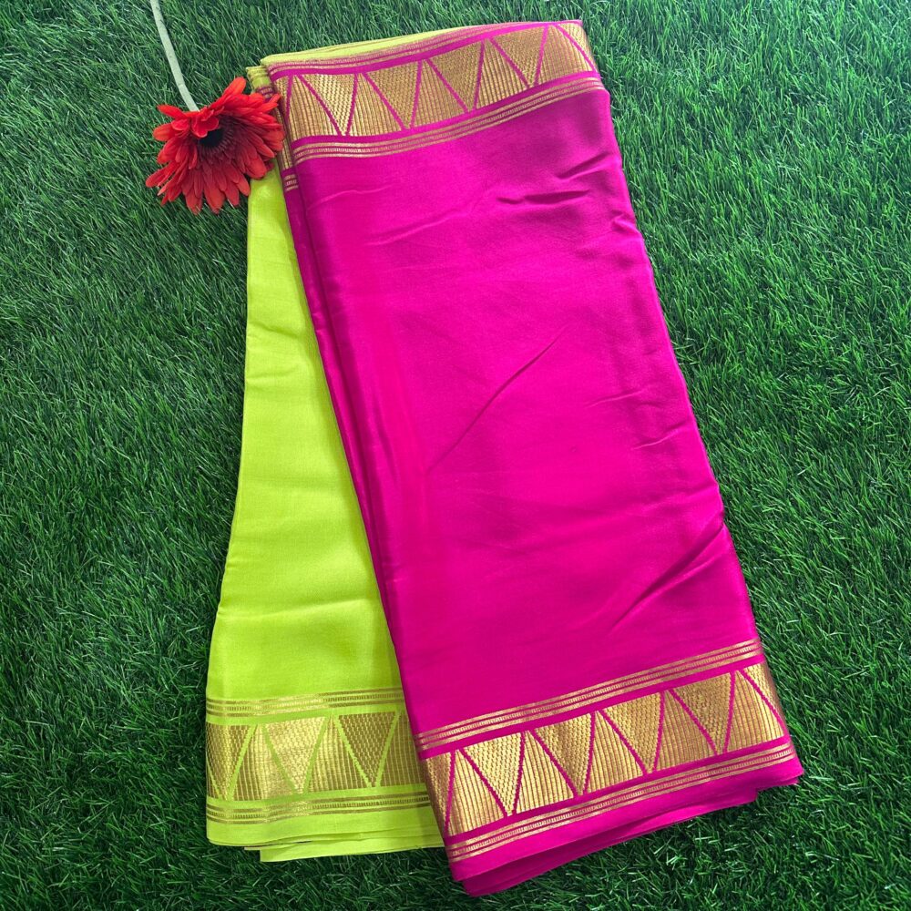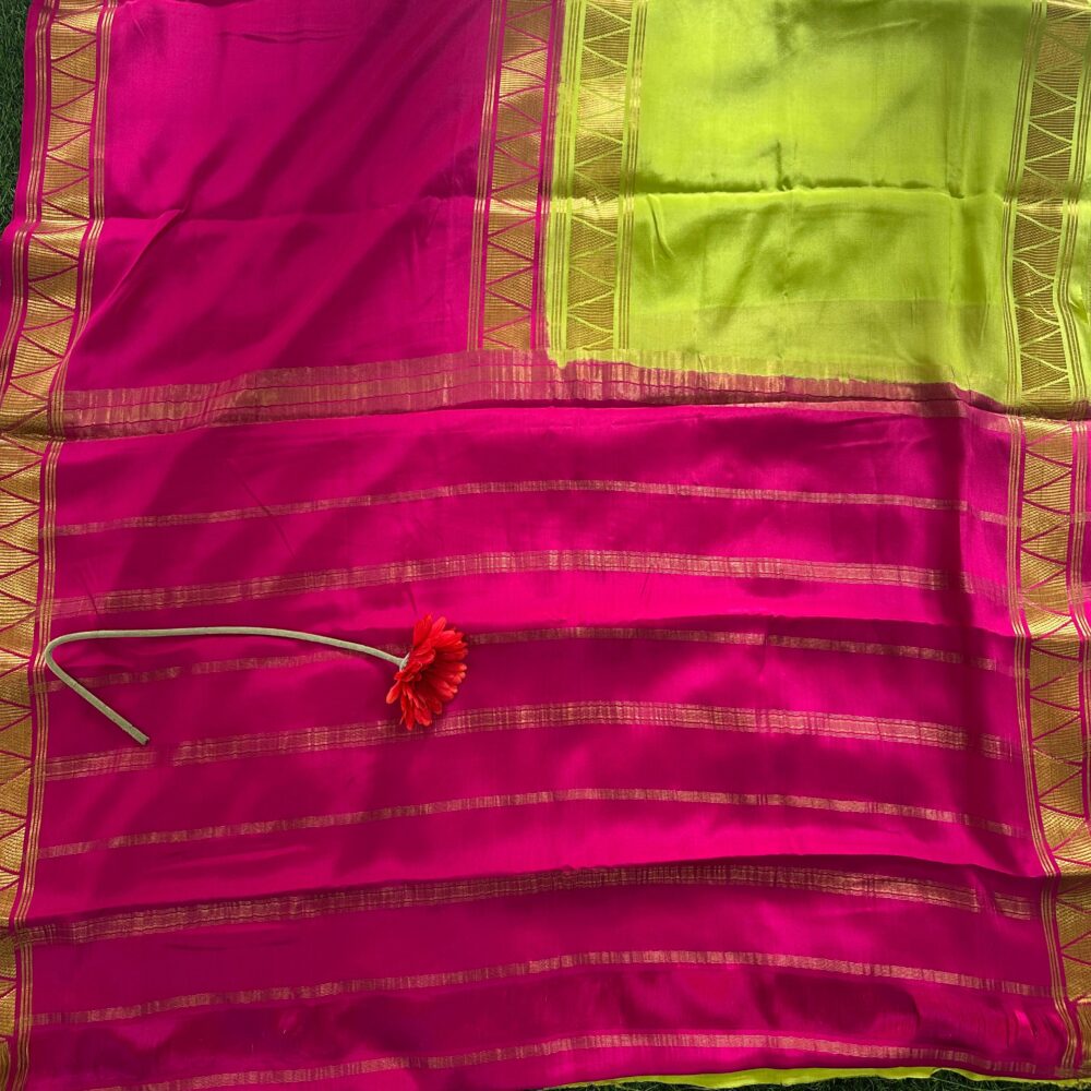 Design : Pure Mysore Silk Parrot Green and Pink half and half Pattren