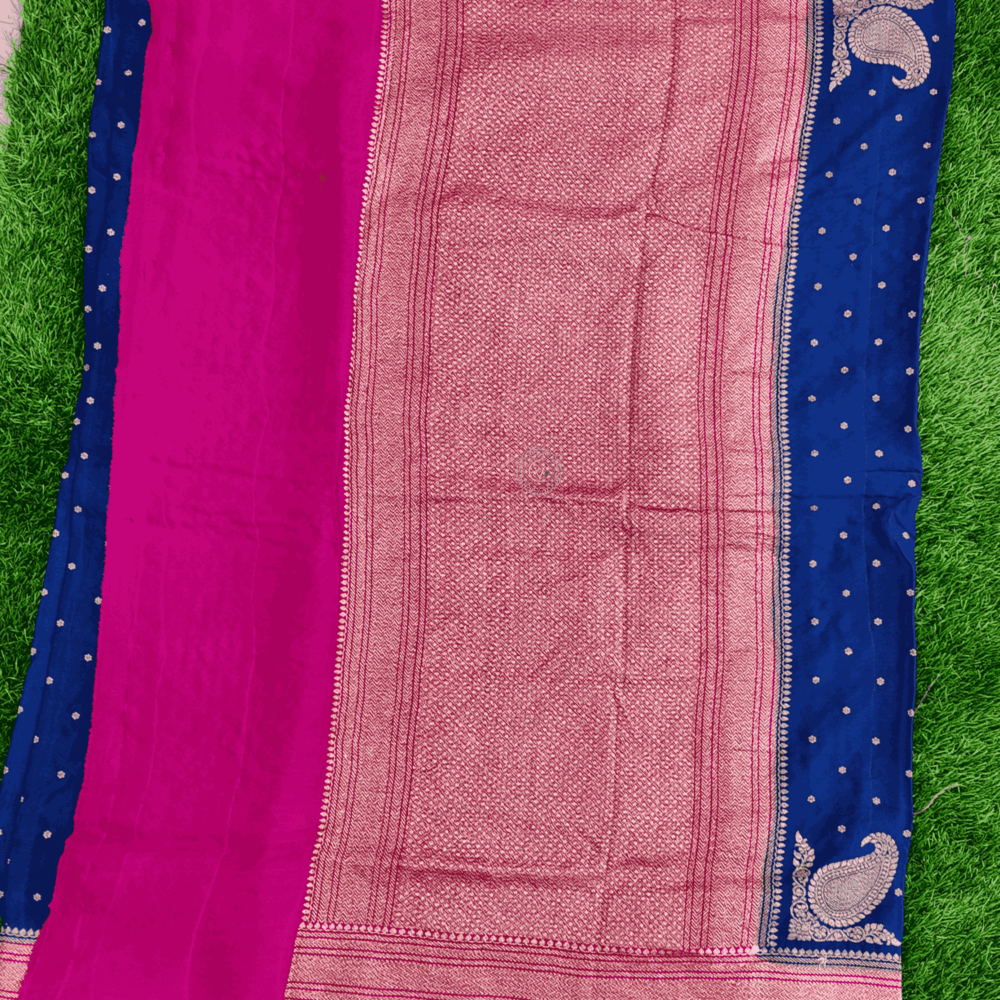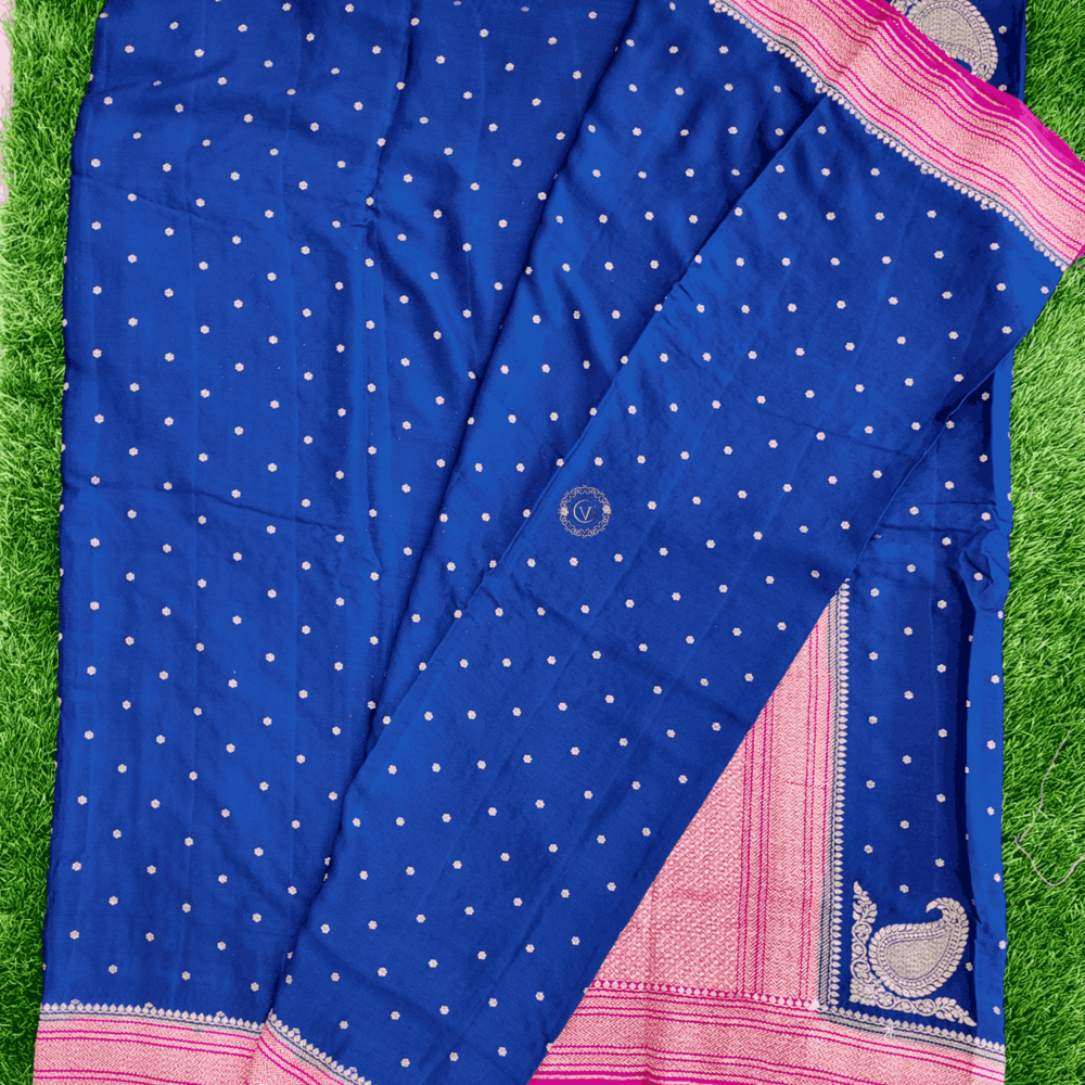 Design : Butta Pattern Pure Benaras Silk Saree Navy Blue With Pink
