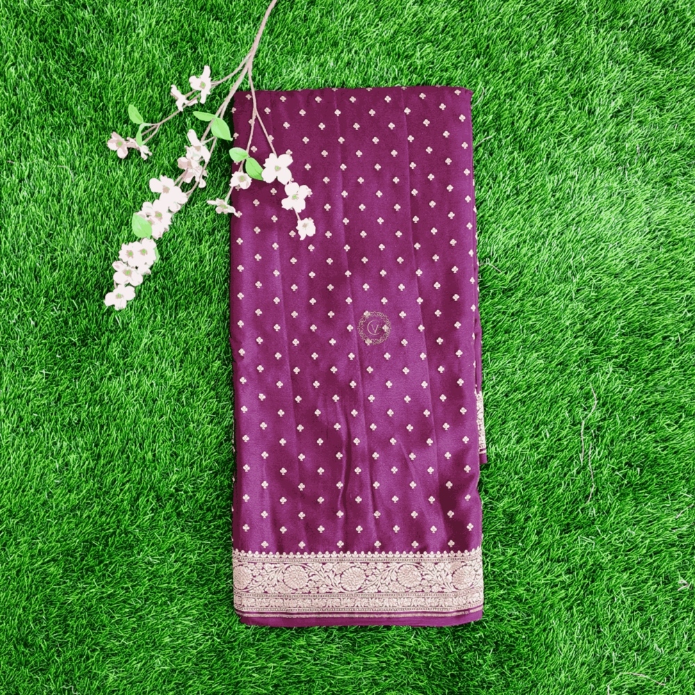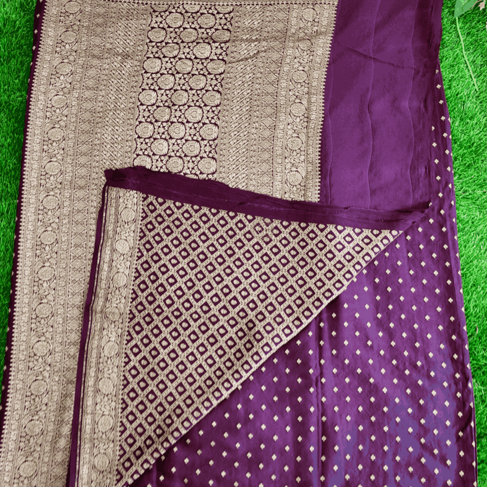 Design : Butta Pattern Pure Benars Silk Saree Self Brown Colour