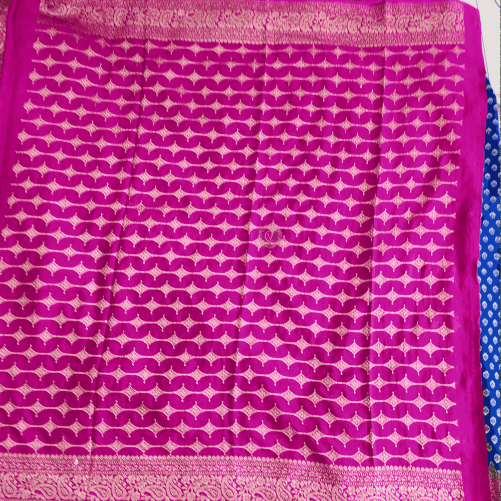 Design : Butta Pattern Pure Benars Silk Saree Royal Blue With Pink