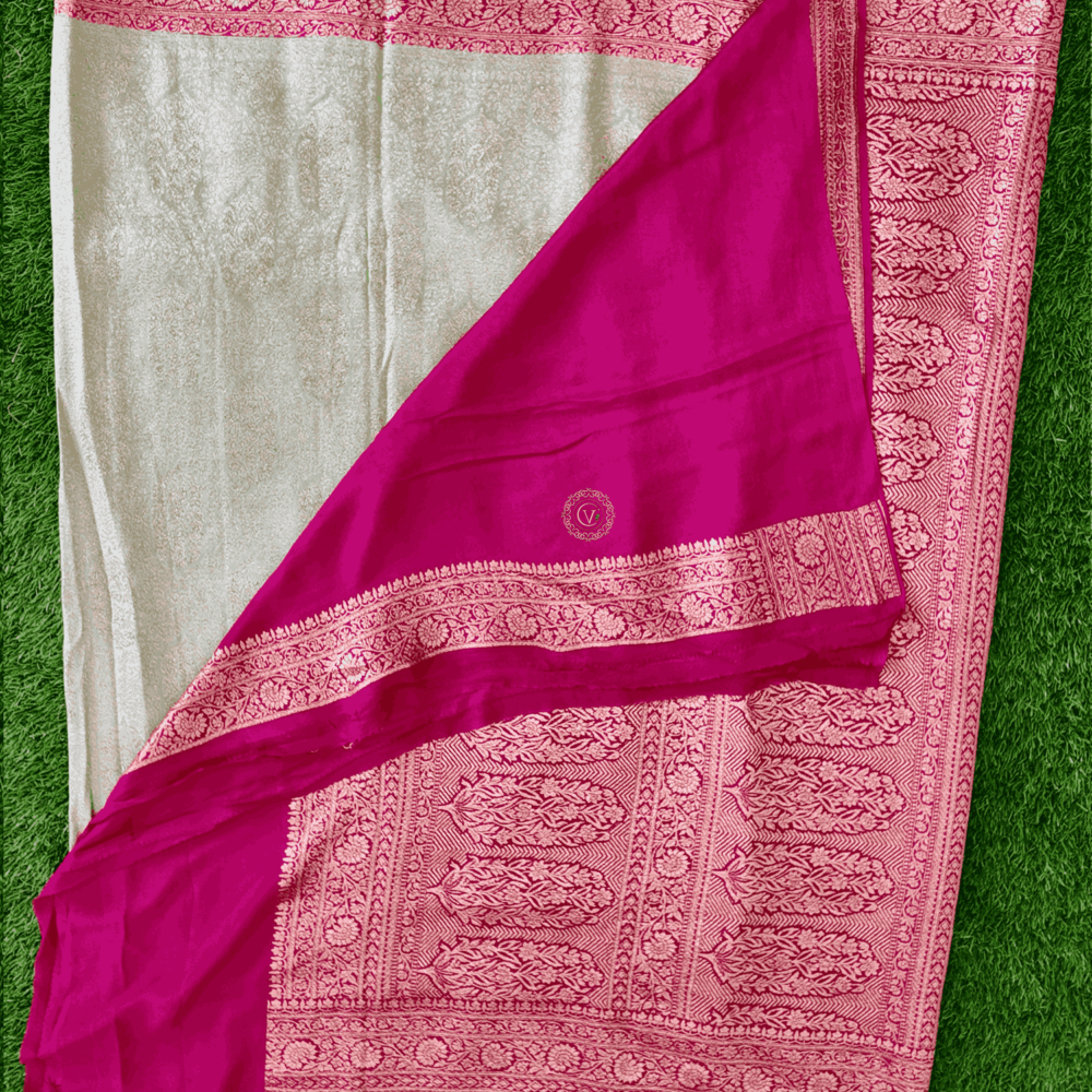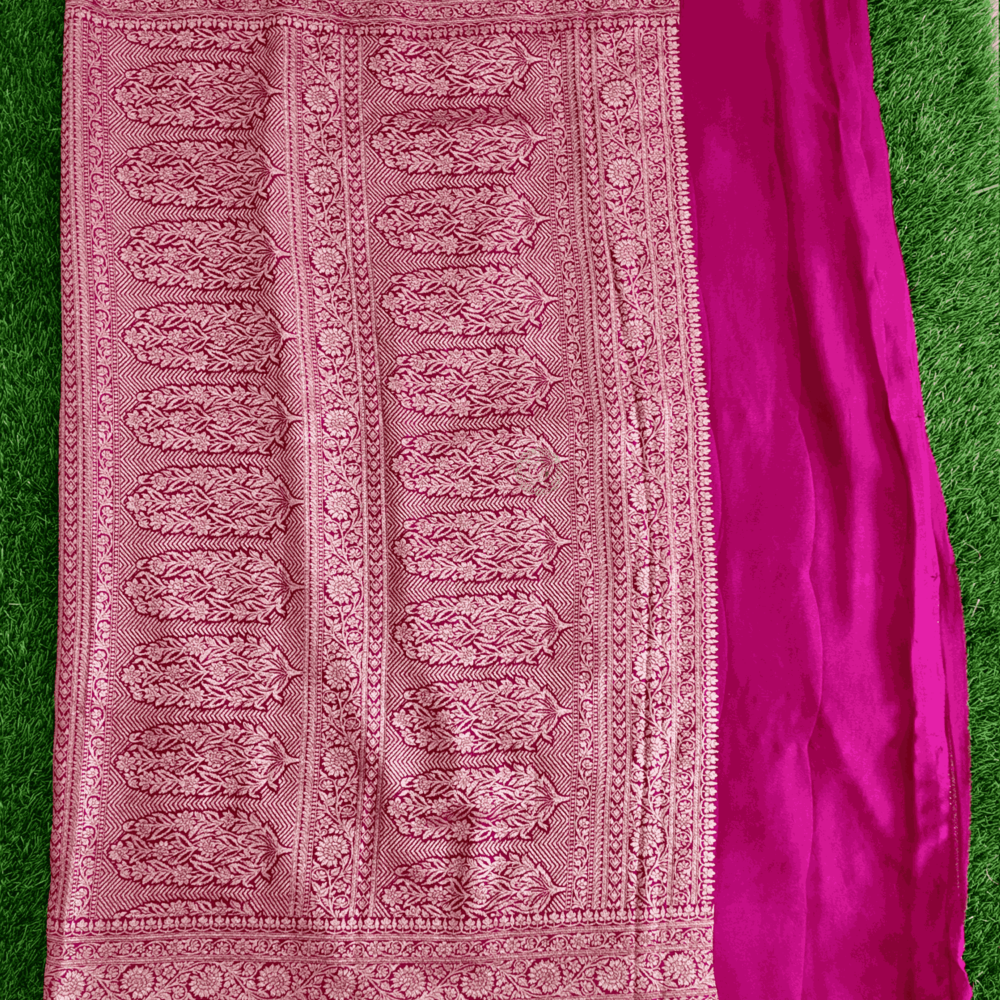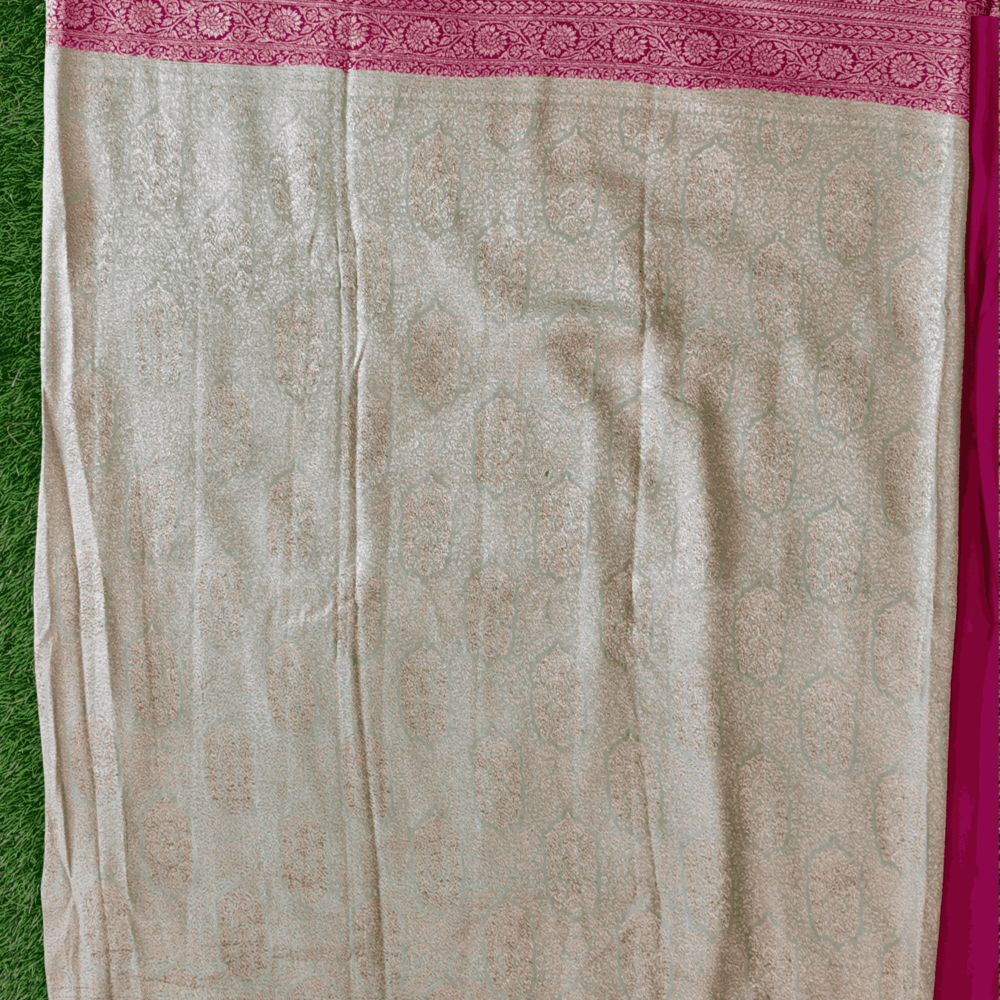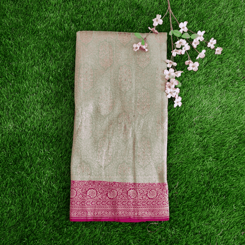 Design : Pure Benars Silk Saree Pista Green With Pink