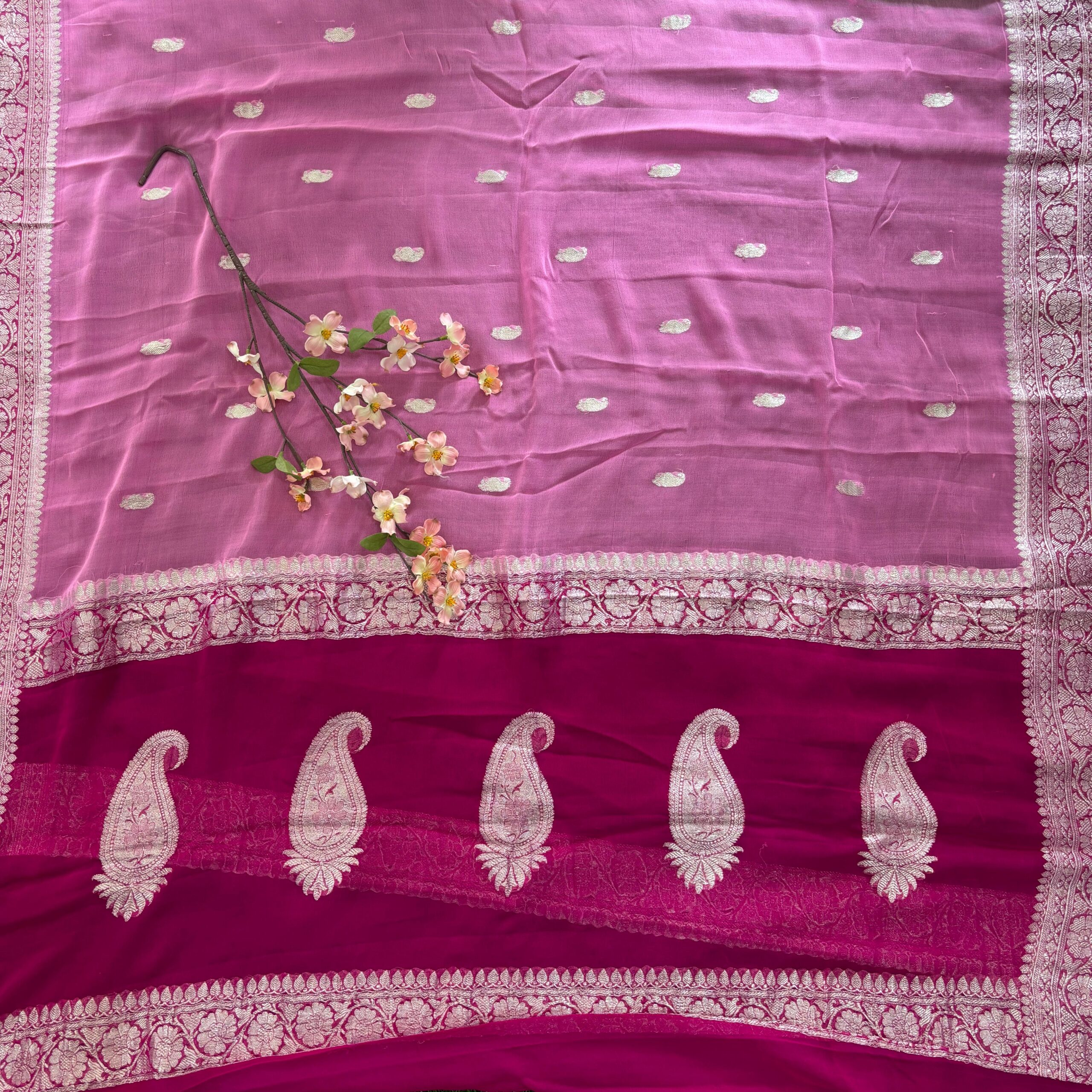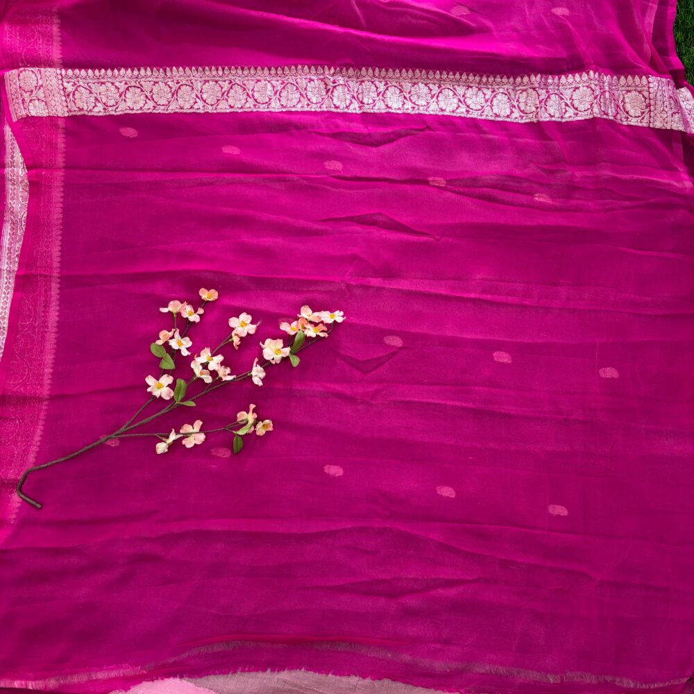 Material : Pure Benars Handloom Khaddi chiffon silk with silver Zari weaving