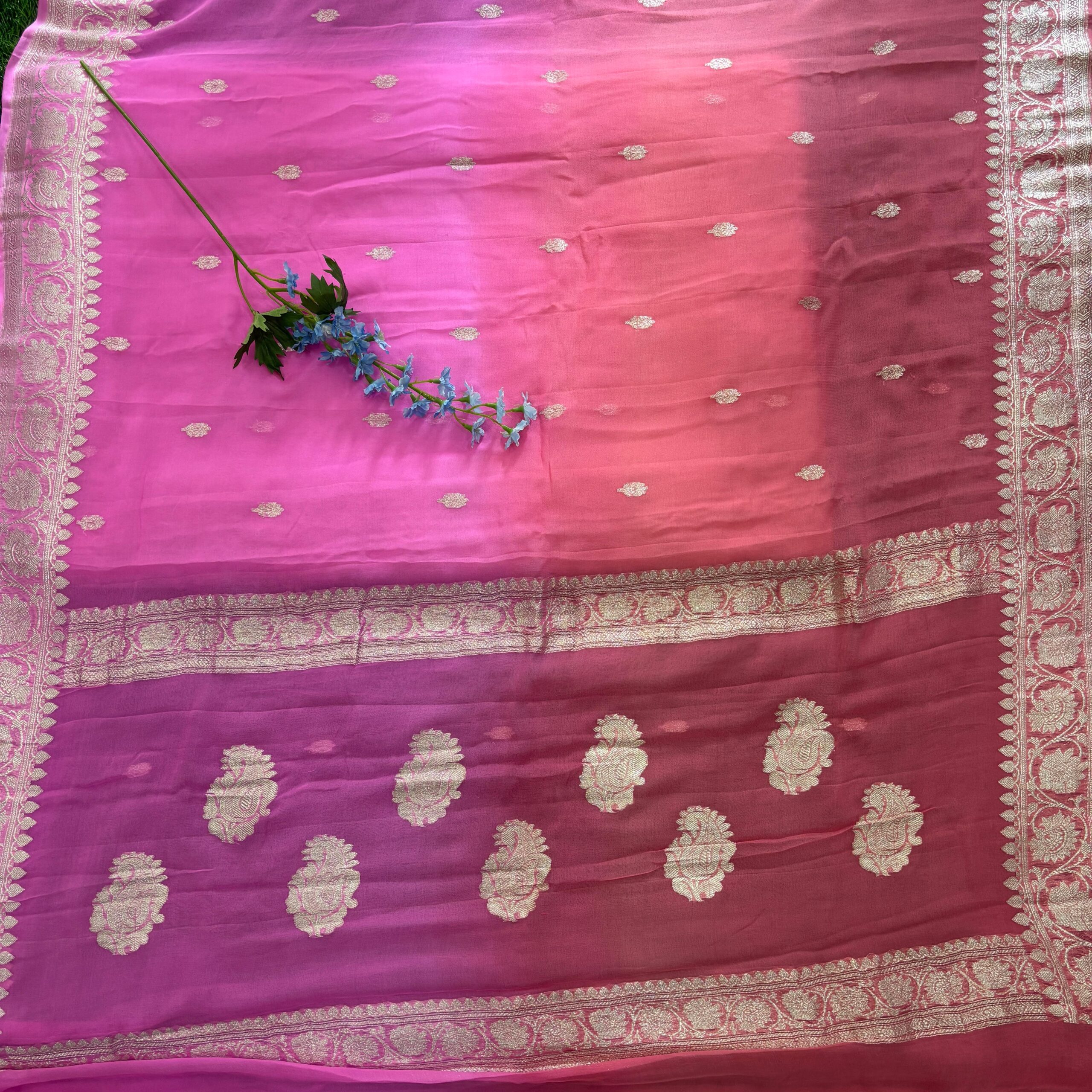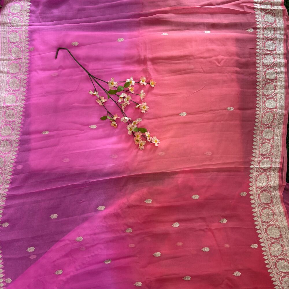 Material : Pure Benars Handloom Khaddi chiffon silk 2D with silver Zari weaving