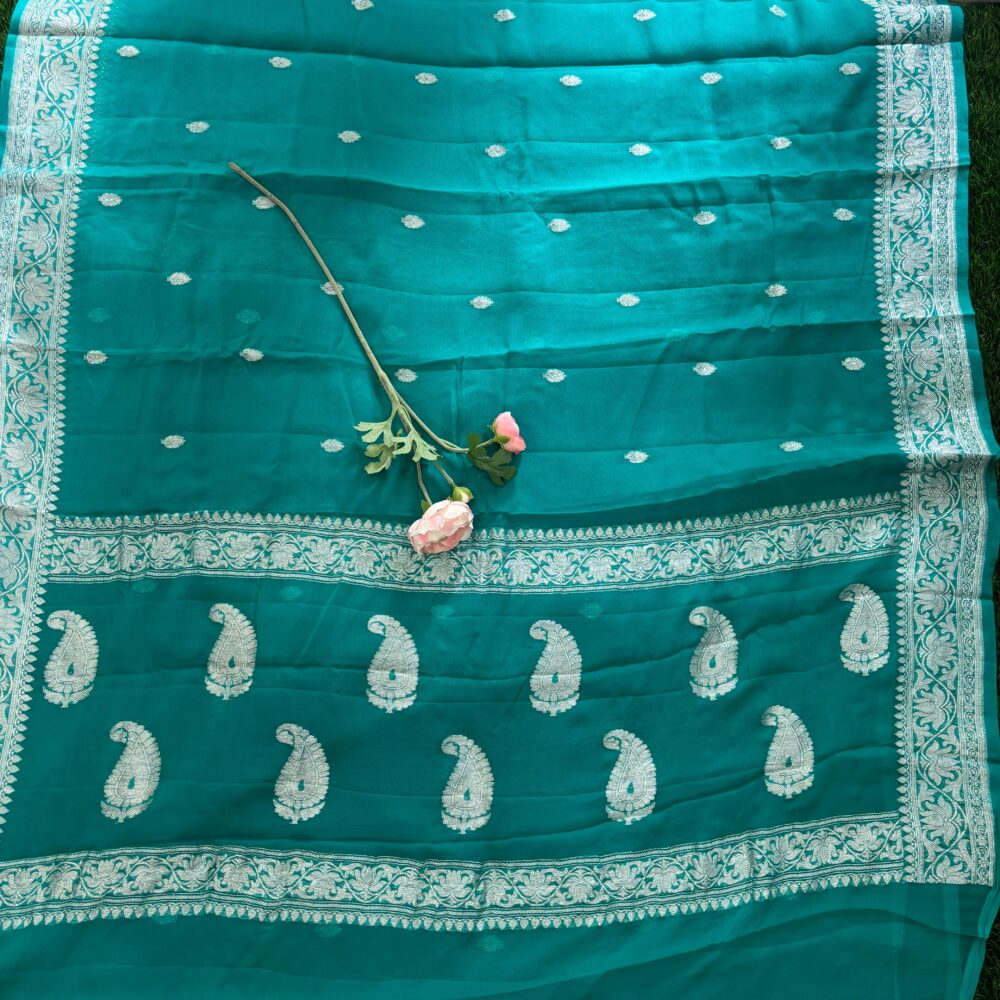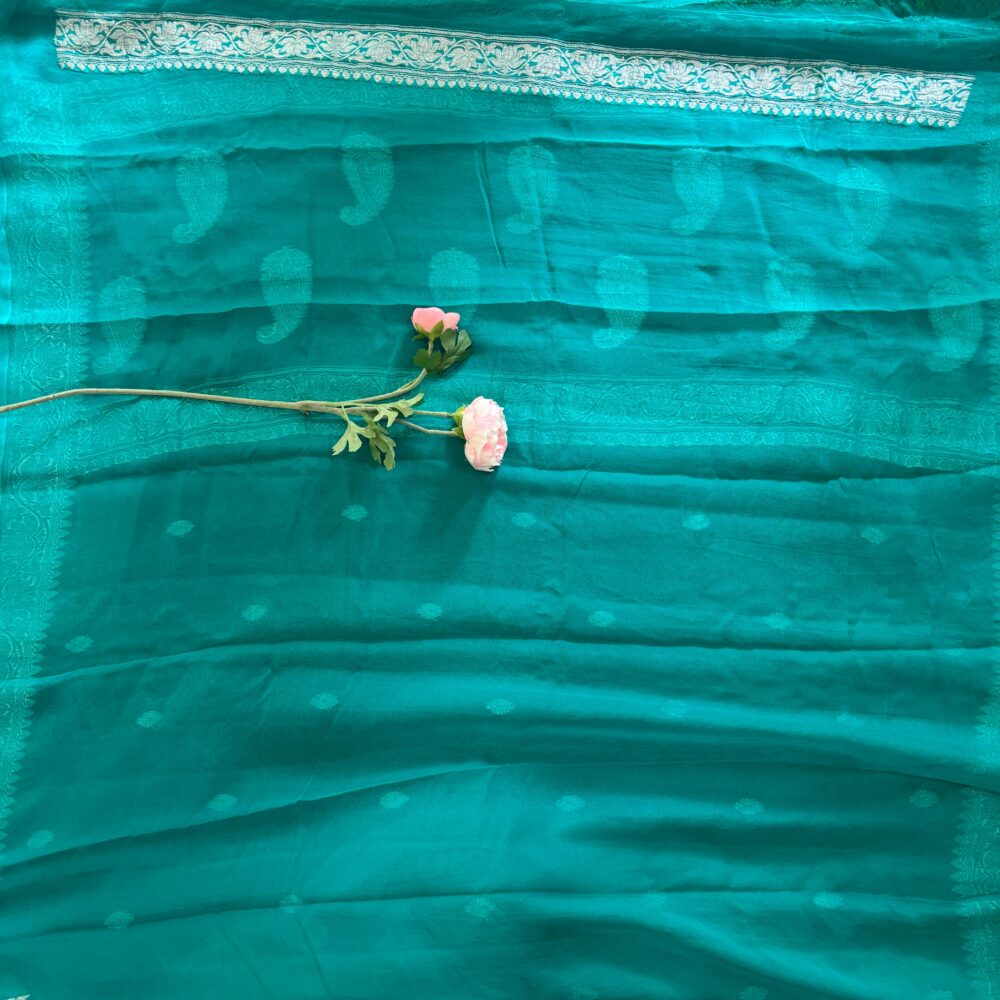 Pure Benars Handloom Khaddi Chiffon Silk With Silver Zari Weaving