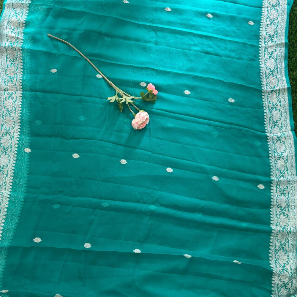 Material :  Pure  Benars Handloom Khaddi chiffon silk with silver Zari weaving
