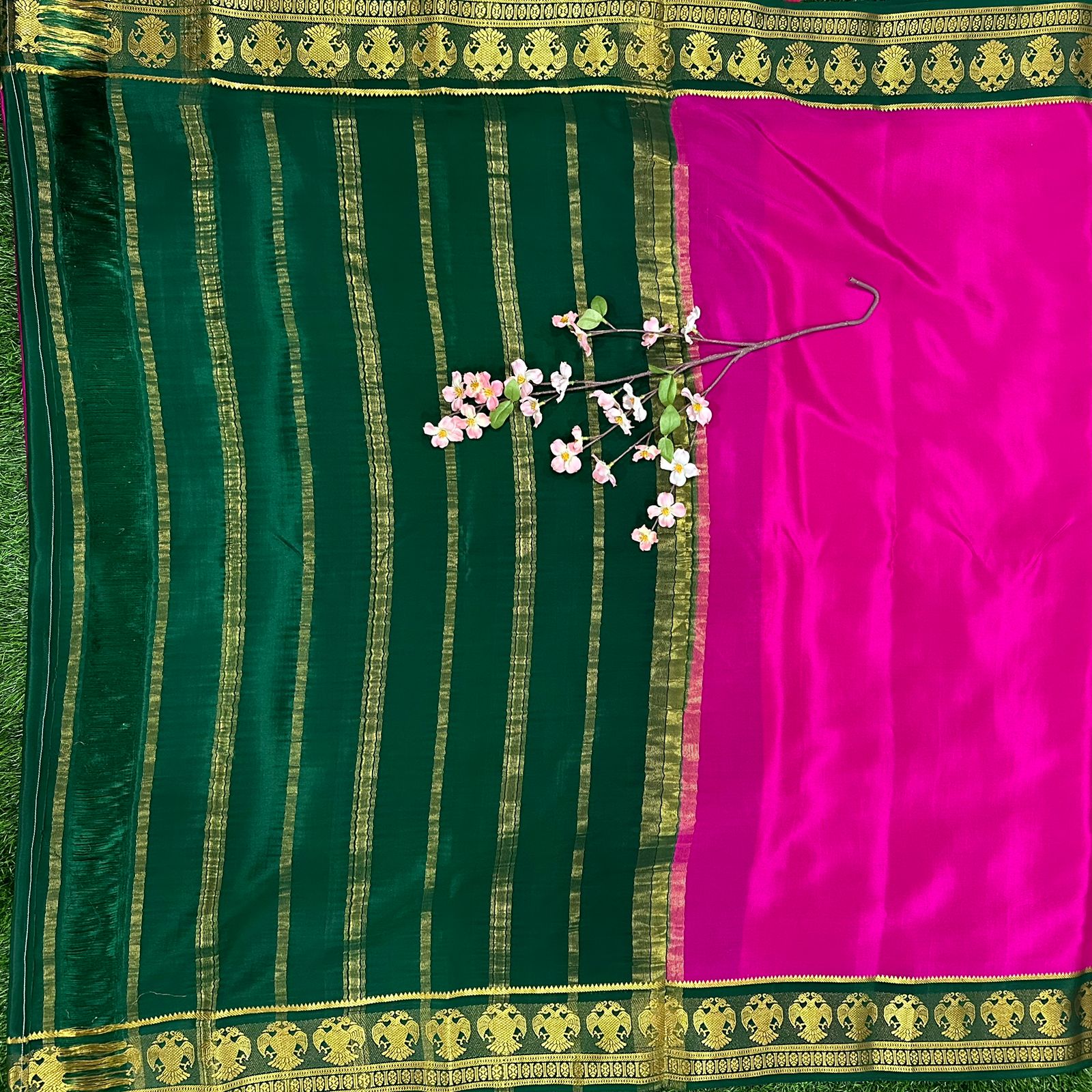 Pure Mysore Silk Crepe Gandaberunda Border Saree