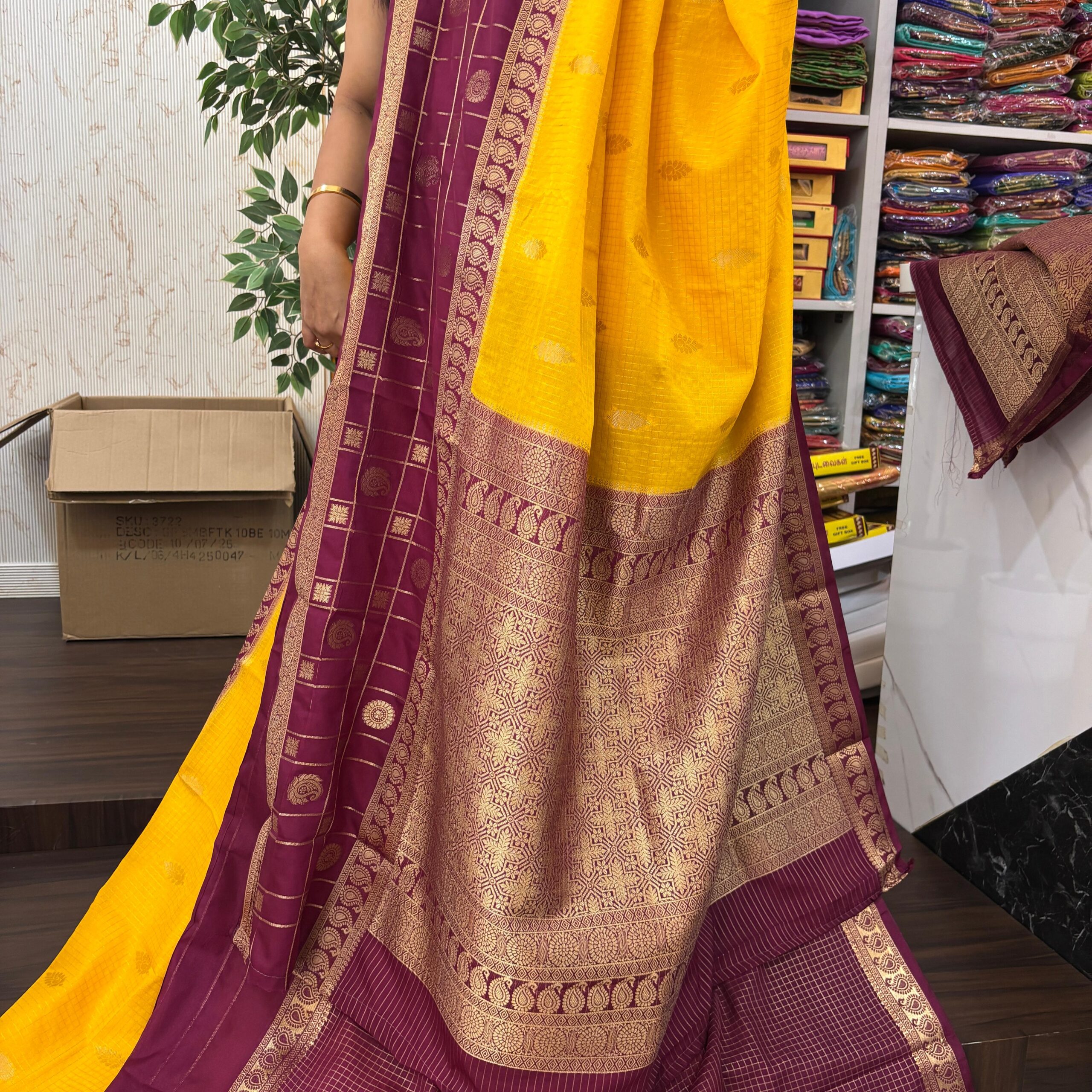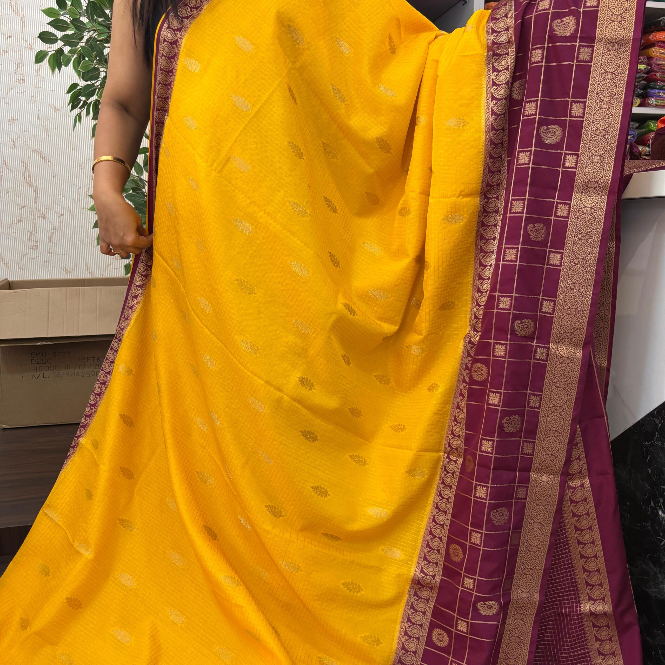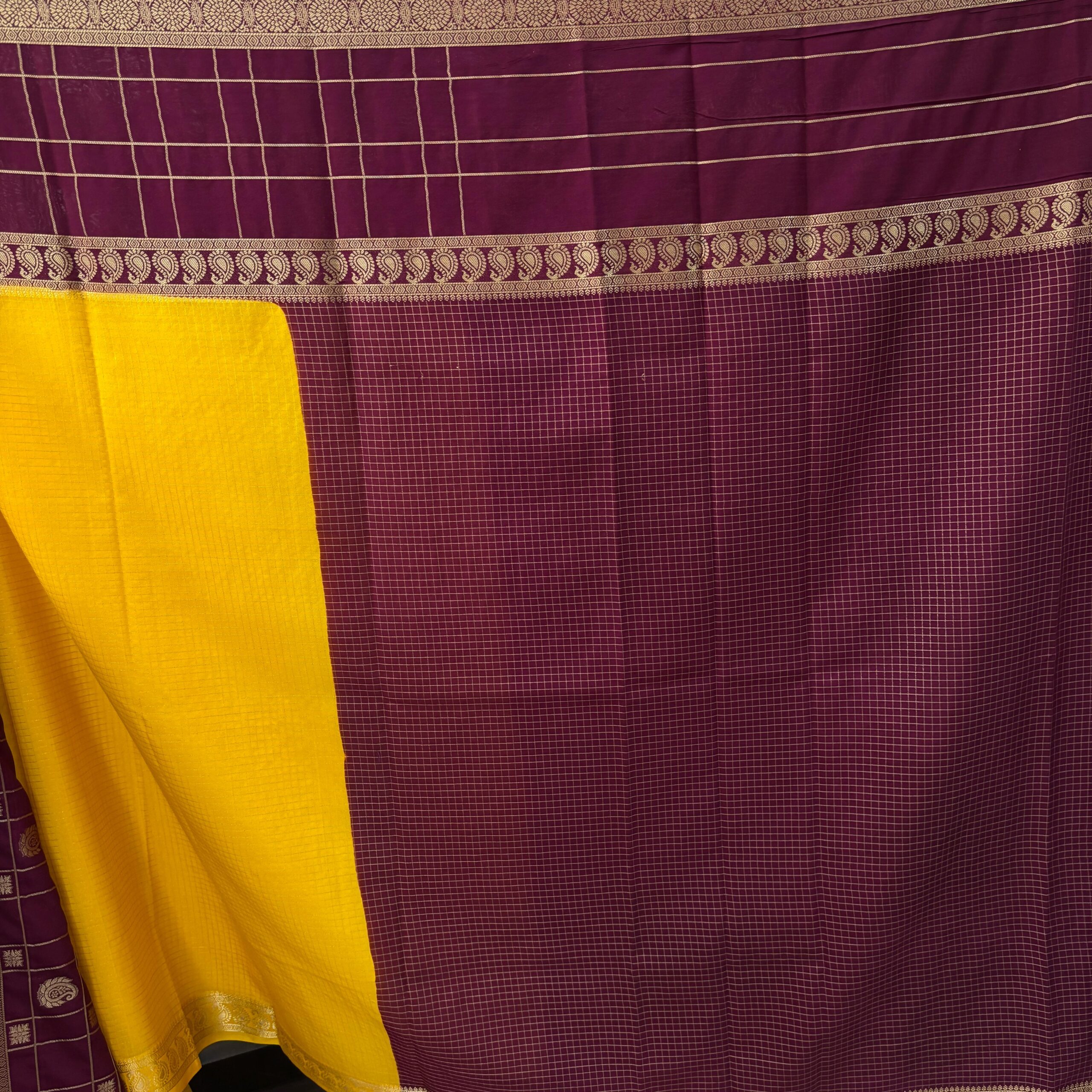 Design : Cheks 2D  Pattern Semi Mysore Silk Saree