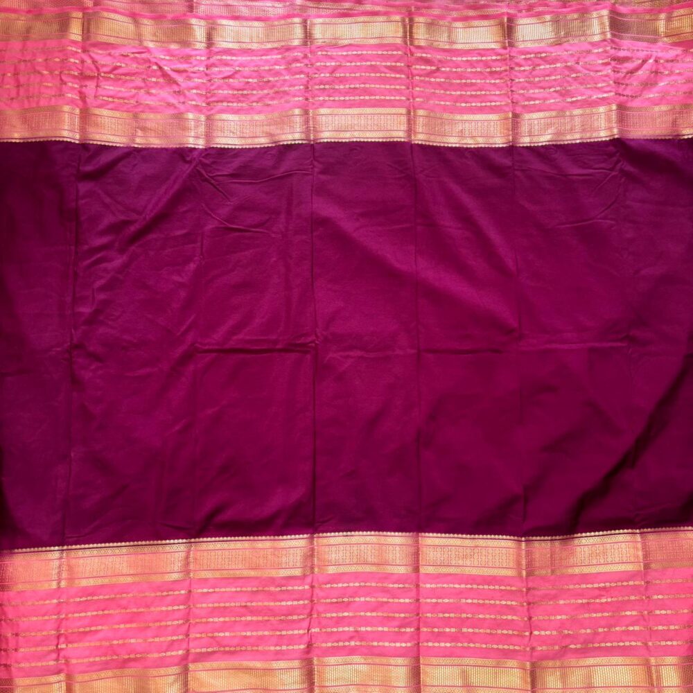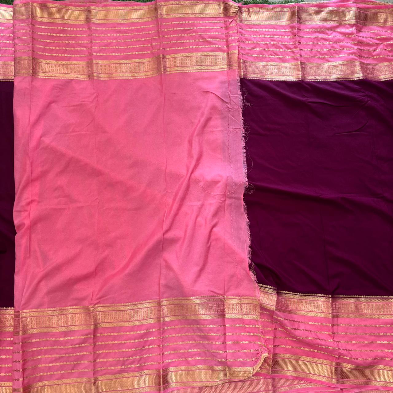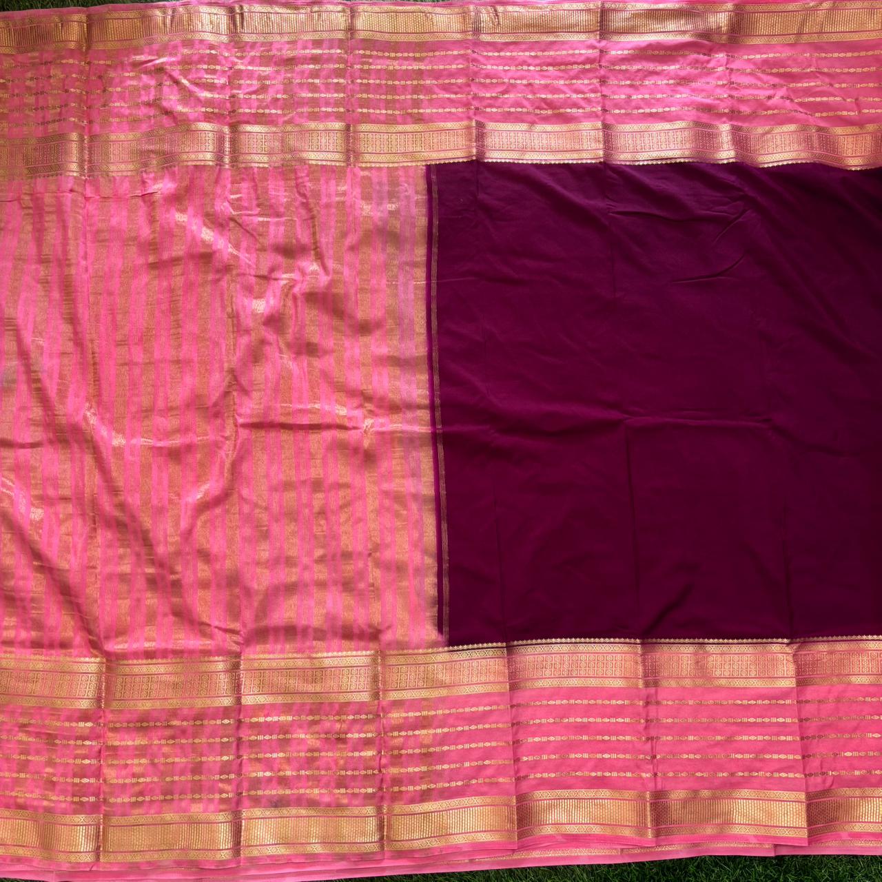 Design : Wine With Pink Contrast Semi Mysore Silk Saree